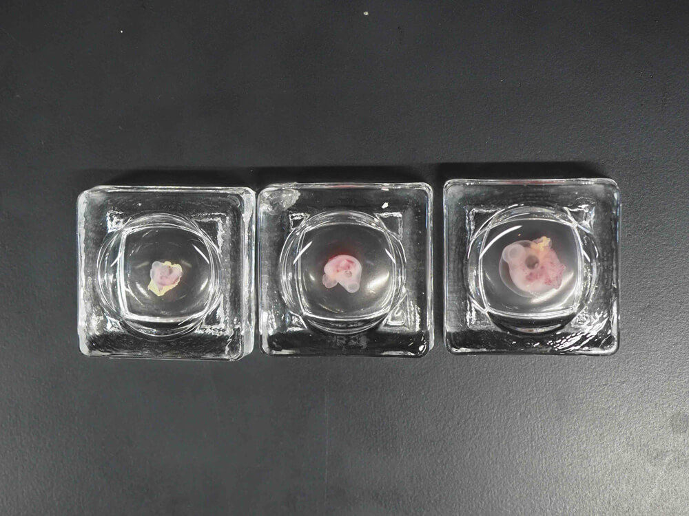 観察で使用したふ化中のニワトリ。左から4日目、5日目、6日目
