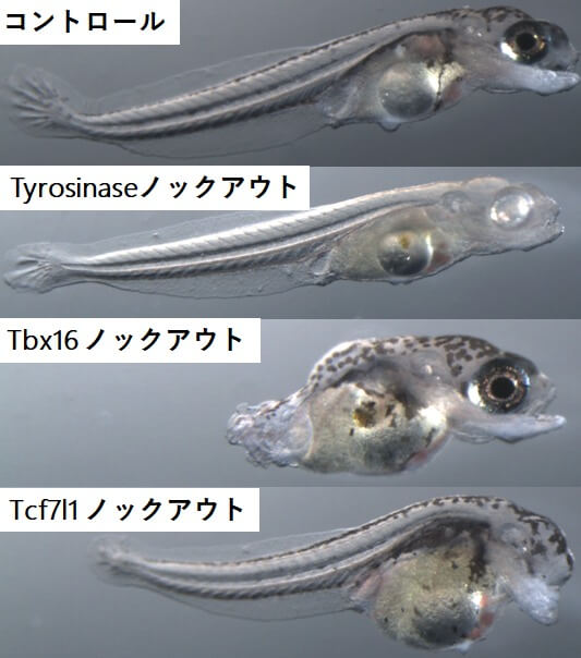 ターコイズキリフィッシュの遺伝子の動態やその機能を高速でかつ簡便に解析する手法を開発。遺伝子につき3種類のsgRNA(シングルガイドRNA:はさみ役のcas9を標的DNA配列へ誘導するように設計された短いRNA)をインジェクションした後、10日目の受精卵。